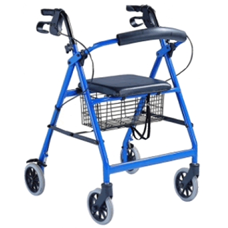 Possui 4 rodas maciças, sendo as rodas dianteiras direcionais e as rodas traseiras dotadas de travões que acionam através de manipulos nas pegas.