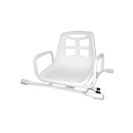 Banco de banheira giratório em alumínio com alavanca de bloqueio do assento em 4 posições diferentes.