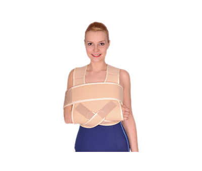 Imobilizador de ombro e braço. Aplica-se facilmente graças ao sistema de fecho em velcro.