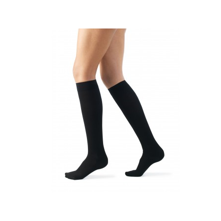 Meia de Compressão Graduada até ao Joelho, em Algodão. Malha canelada. Compressão: 140DEN/18-21mmHg. As meias NURSINGCARE® foram concebidas para proporcionar bem-estar e elegância e melhorar a circulação venosa nos membros inferiores, graças à massagem exercida pela compressão graduada. Ideal para evitar a sensação de pernas cansadas e inchadas. Recomendado para prevenir e tratar as varizes e/ou insuficiência venosa.